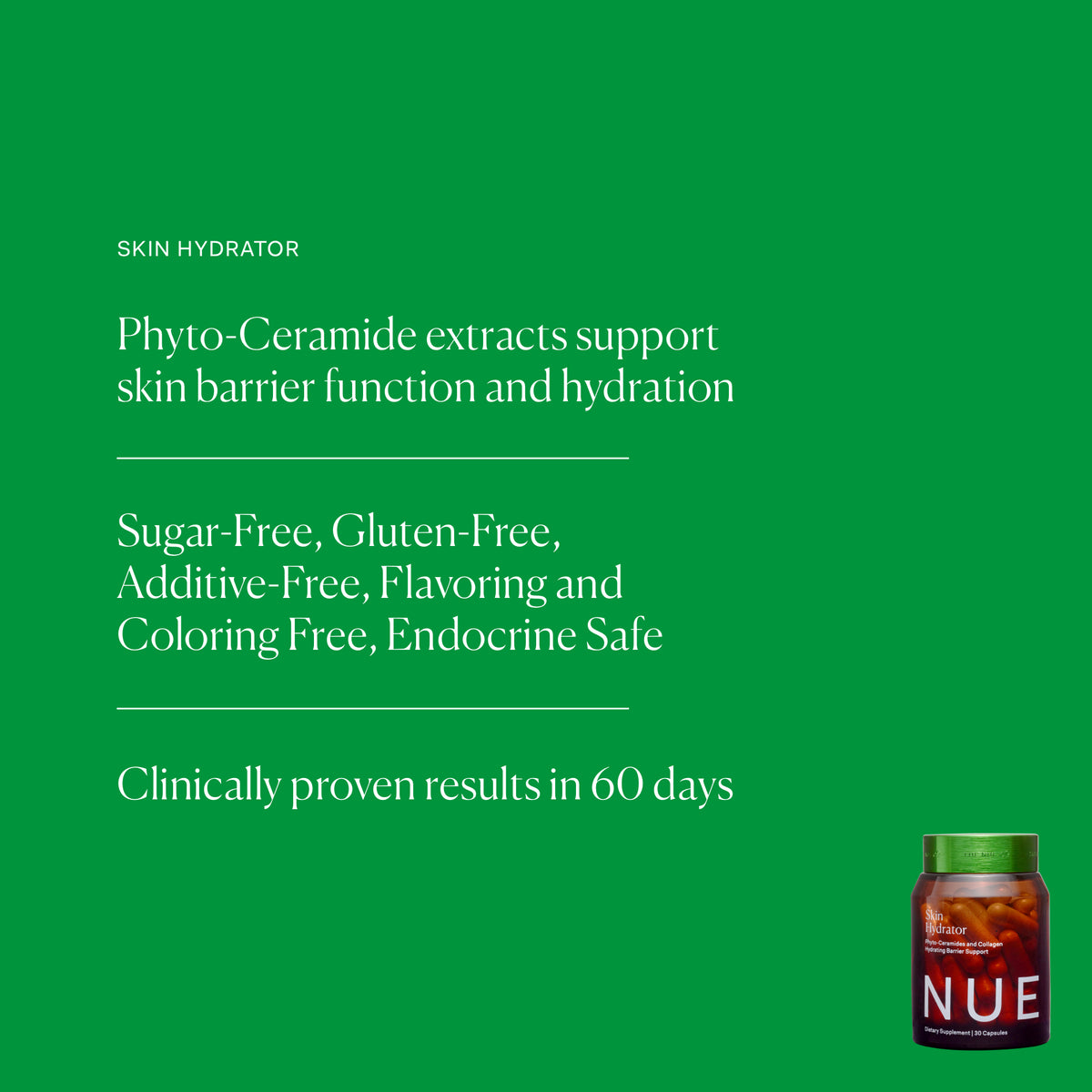 The health of your skin is connected to the health of your lipid barrier, specifically the presence of ceramides. When the lipid barrier becomes compromised, it can result in water loss and damage to the skin’s structure, potentially leading to acne, eczema, dryness and wrinkles. SKIN HYDRATOR is formulated with clinically studied phytoceramides to repair the skin barrier and keep moisture in.