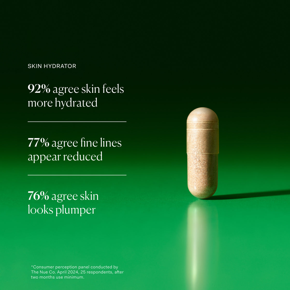 We added hydrolysed collagen (collagen peptides) to SKIN HYDRATOR as it can be easily absorbed into the body. It then gets to work to support natural collagen production and replenish lost ceramides, repairing the lipid skin barrier and smoothing and plumping your complexion for a dewy, hydrated look. Fine lines appear reduced by 18% in 60 days.